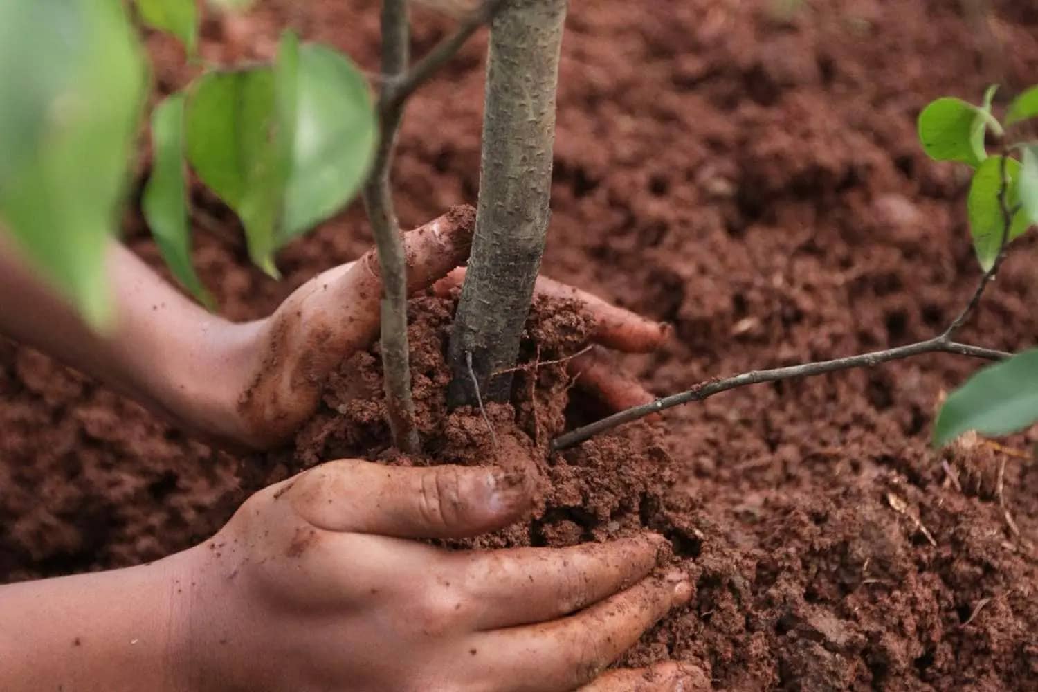 Кореневу систему, після посадки в яму, обовʼязково розрівнюють, прикриваючи шаром грунту, ущільнюють та рясно поливають.